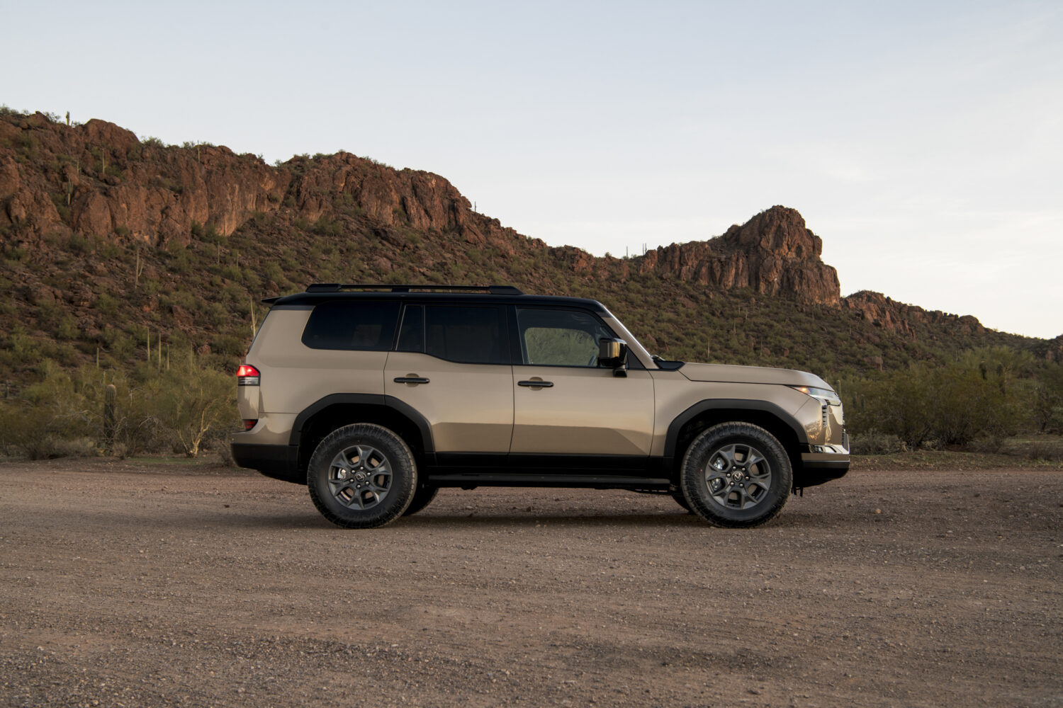 Handsome as all get out – More than just sleek, the 2025 Lexus GX 550 embodies stability and strength with a boxy profile that’s both distinct but approachable. Its wide stance, accentuated by the perfectly sculpted fender flares, give the entire body a unique and bold frame to work off. The maw of a grill up front is a bit too aggressive and “robotic” for my tastes, but nicely compliments and blends into the entire aesthetic. The rear however, is a thing of beauty. I dig the singular brake light that spans the width of the rear, and the blocky design motifs give everything a retro styling. It helped that the vehicle we tested came in a sandy color called Earth with Black Roof; this color combination perfectly screams “off-road capable”.